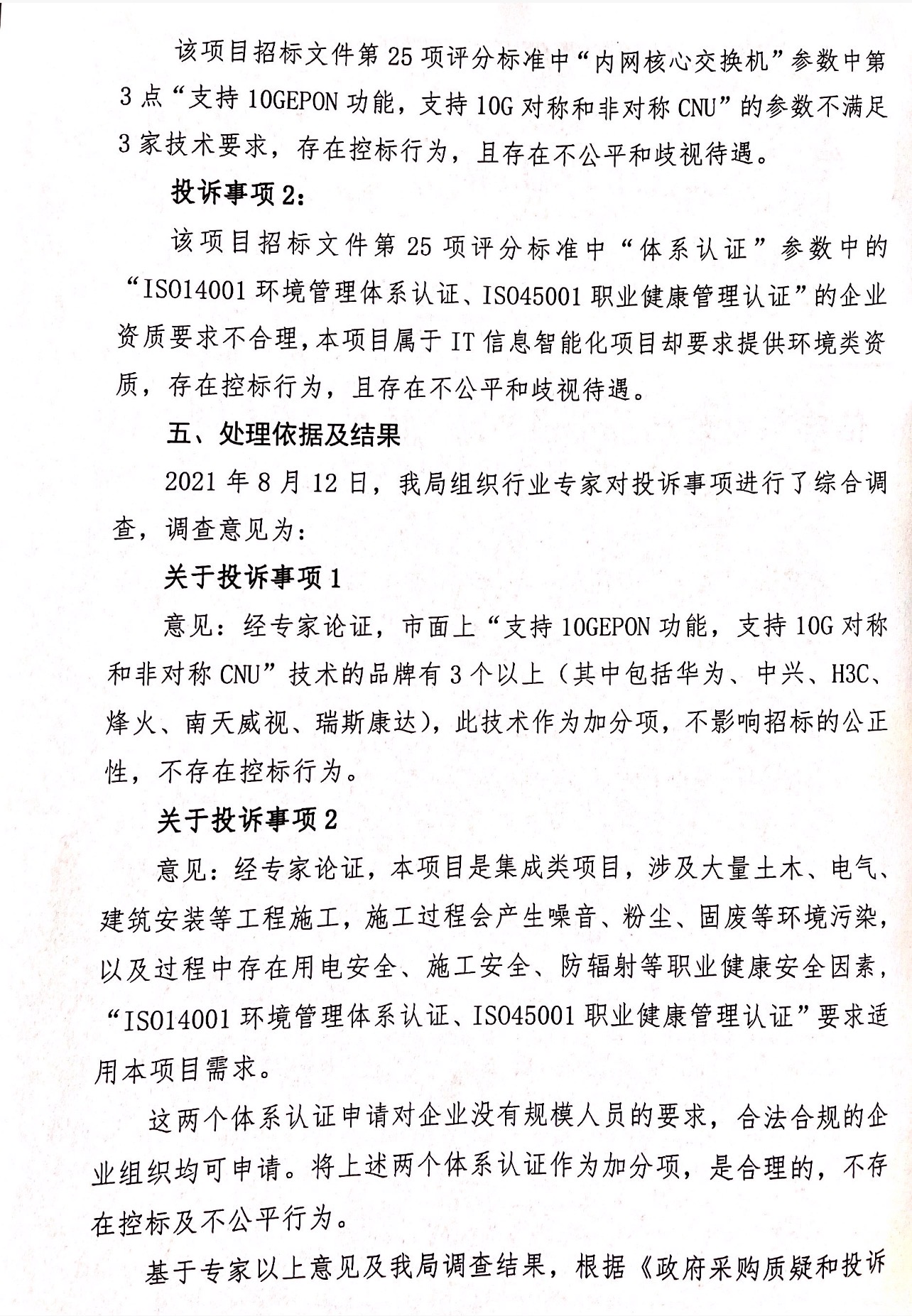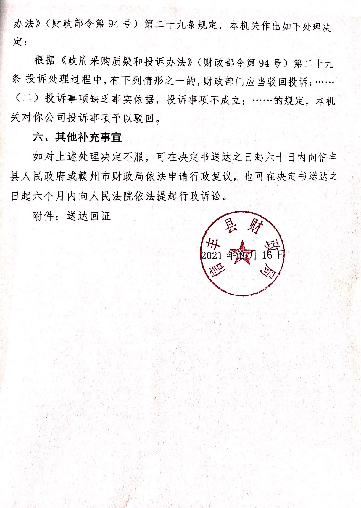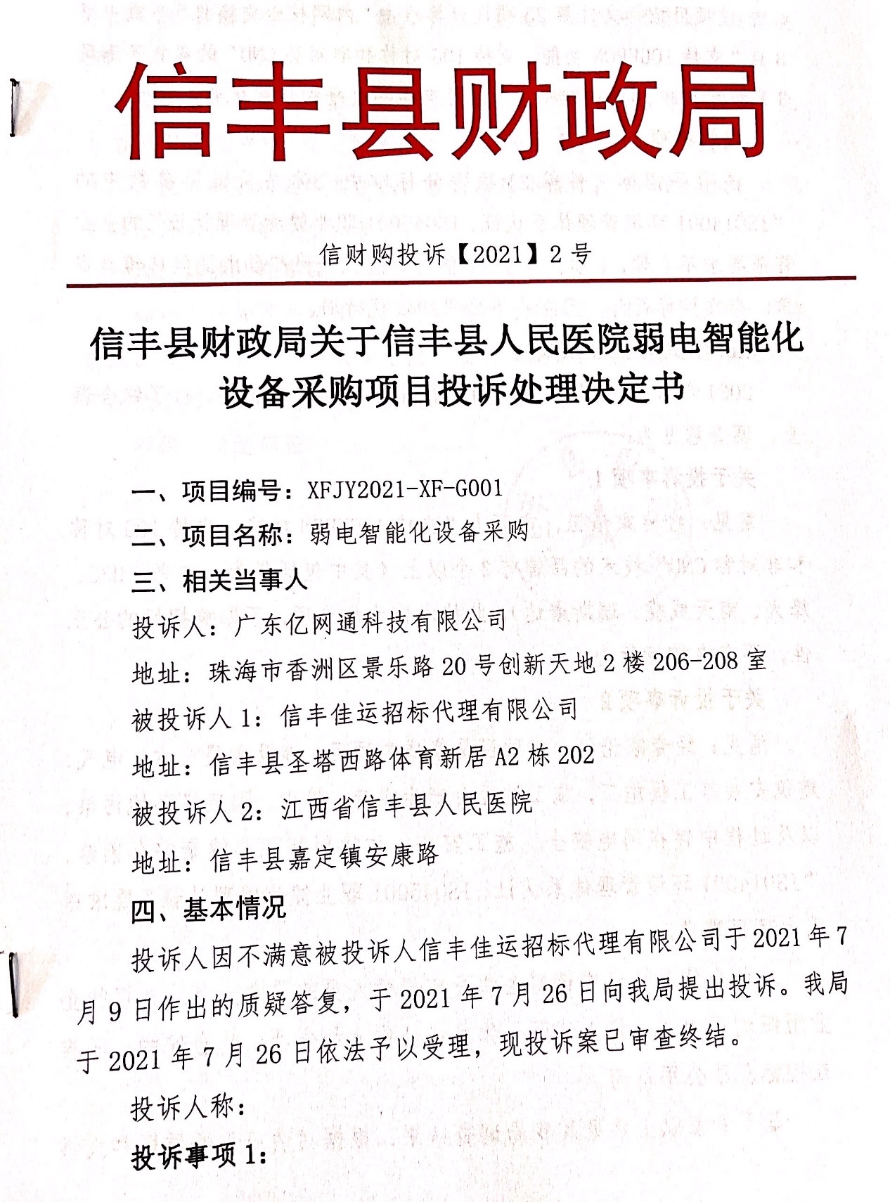 信丰县财政局关于信丰县人民医院弱电智能化设备采购 项目投诉处理决定书