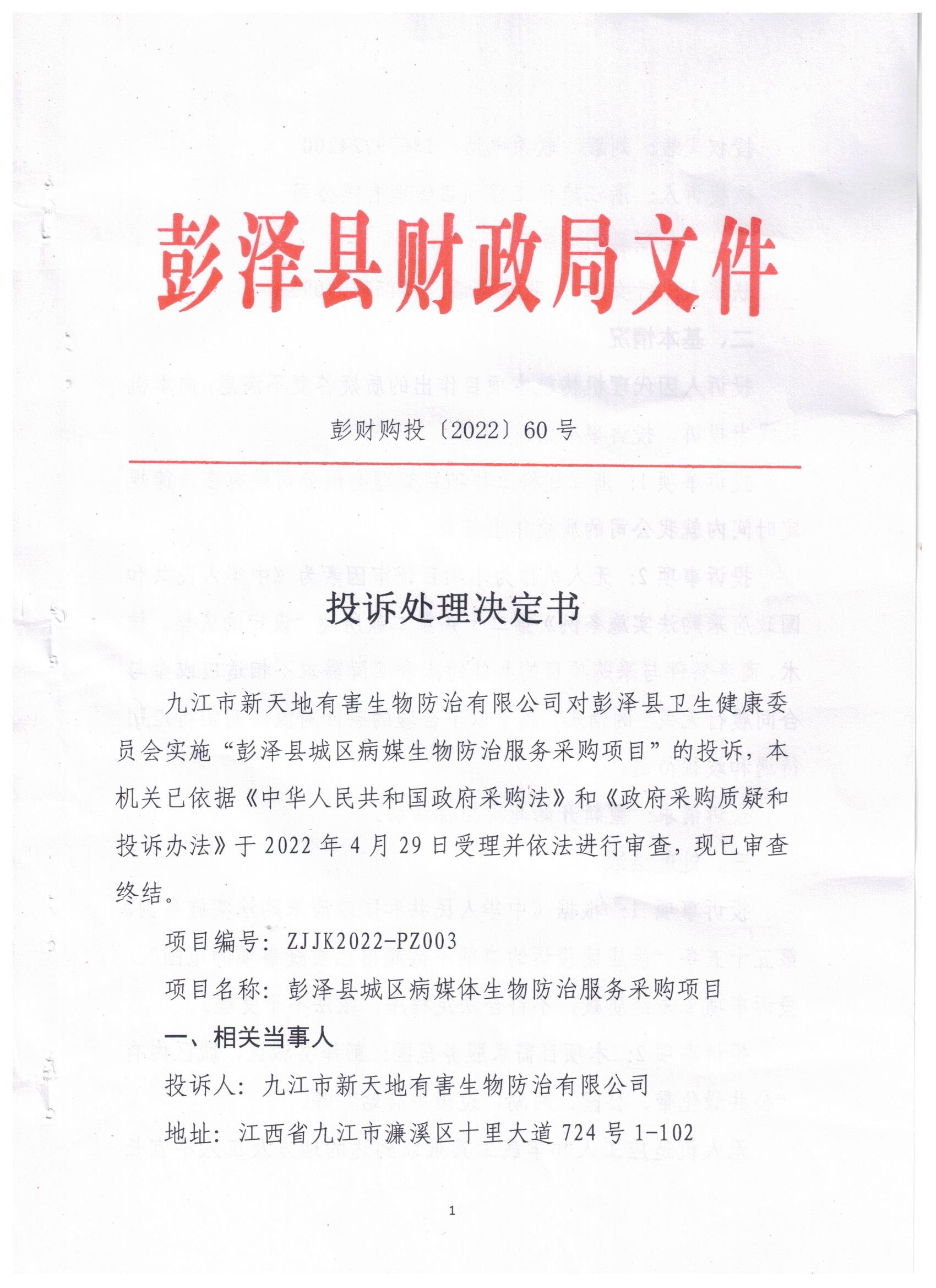 投诉处理决定书