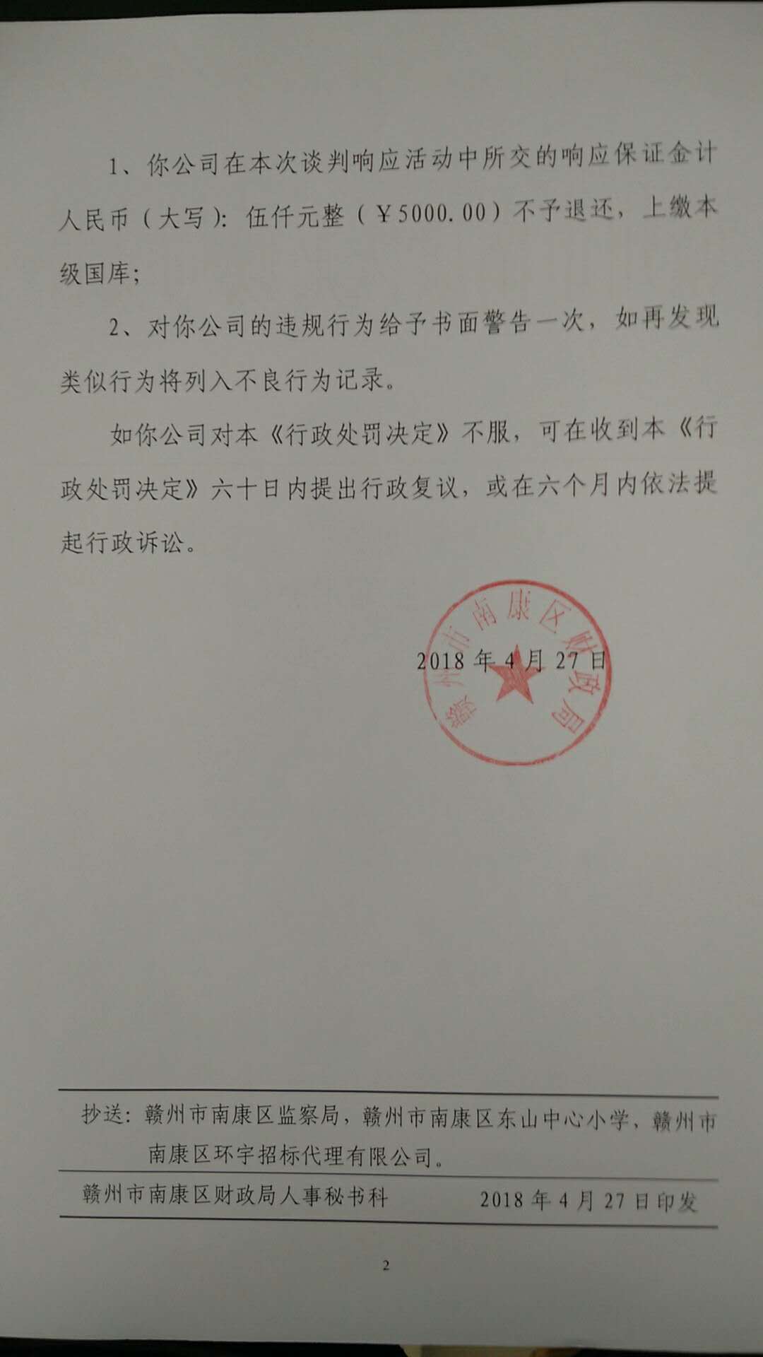 1、你公司在本次谈判响应活动中所交的响应保证金计人民币(大写):伍仟元整(¥5000.00)不予退还,上缴本级国库;