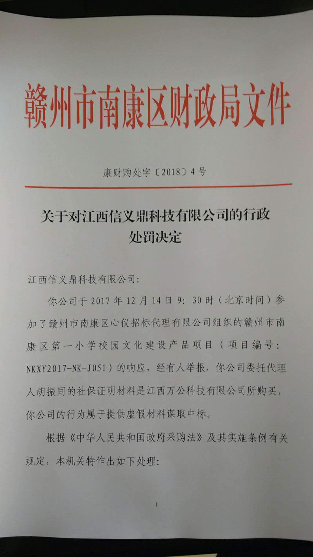 根据《中华人民共和国政府采购法》及其实施条例有关规定,本机关特作出如下处理: