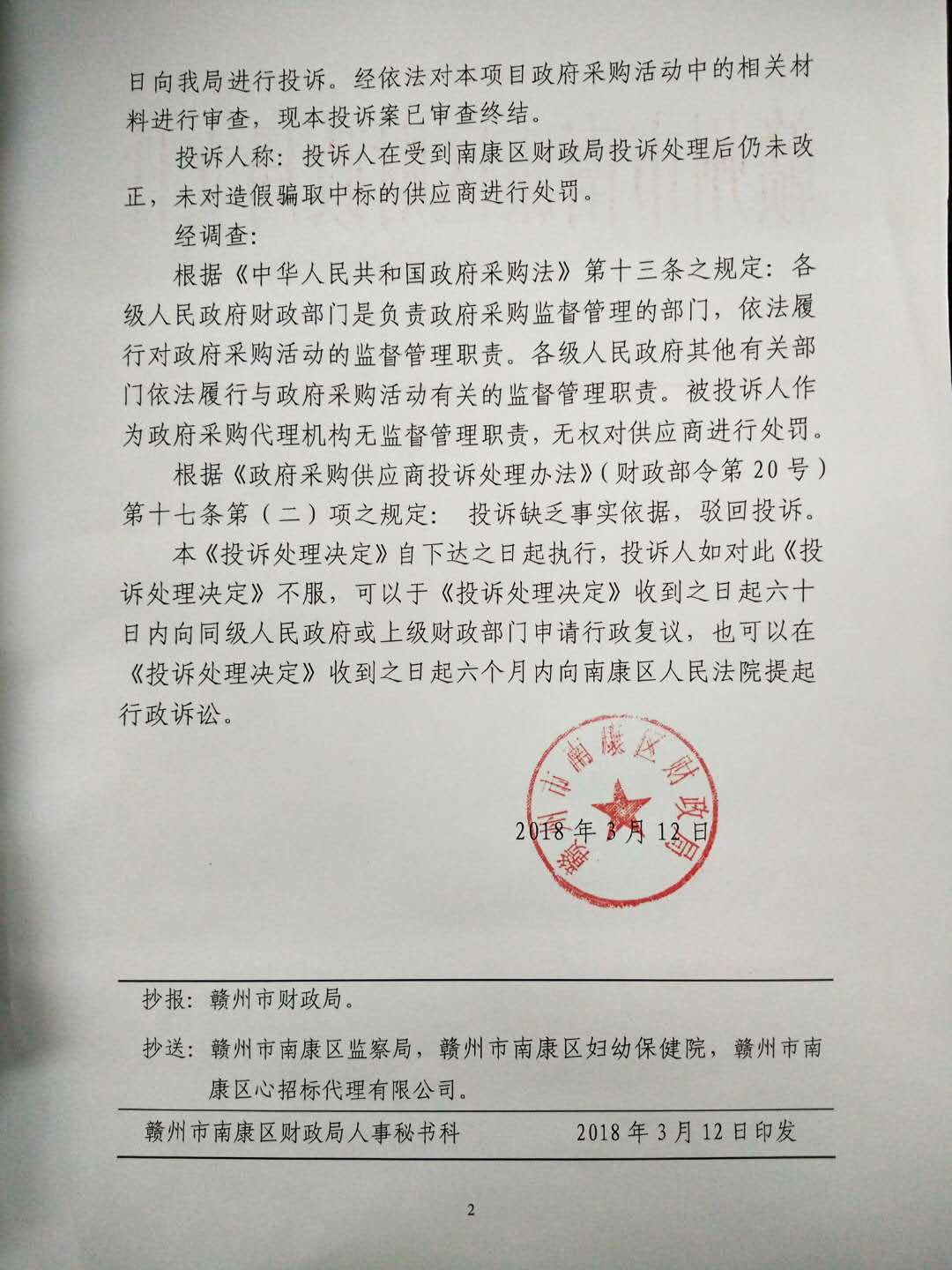 康财购诉字〔2018〕2号