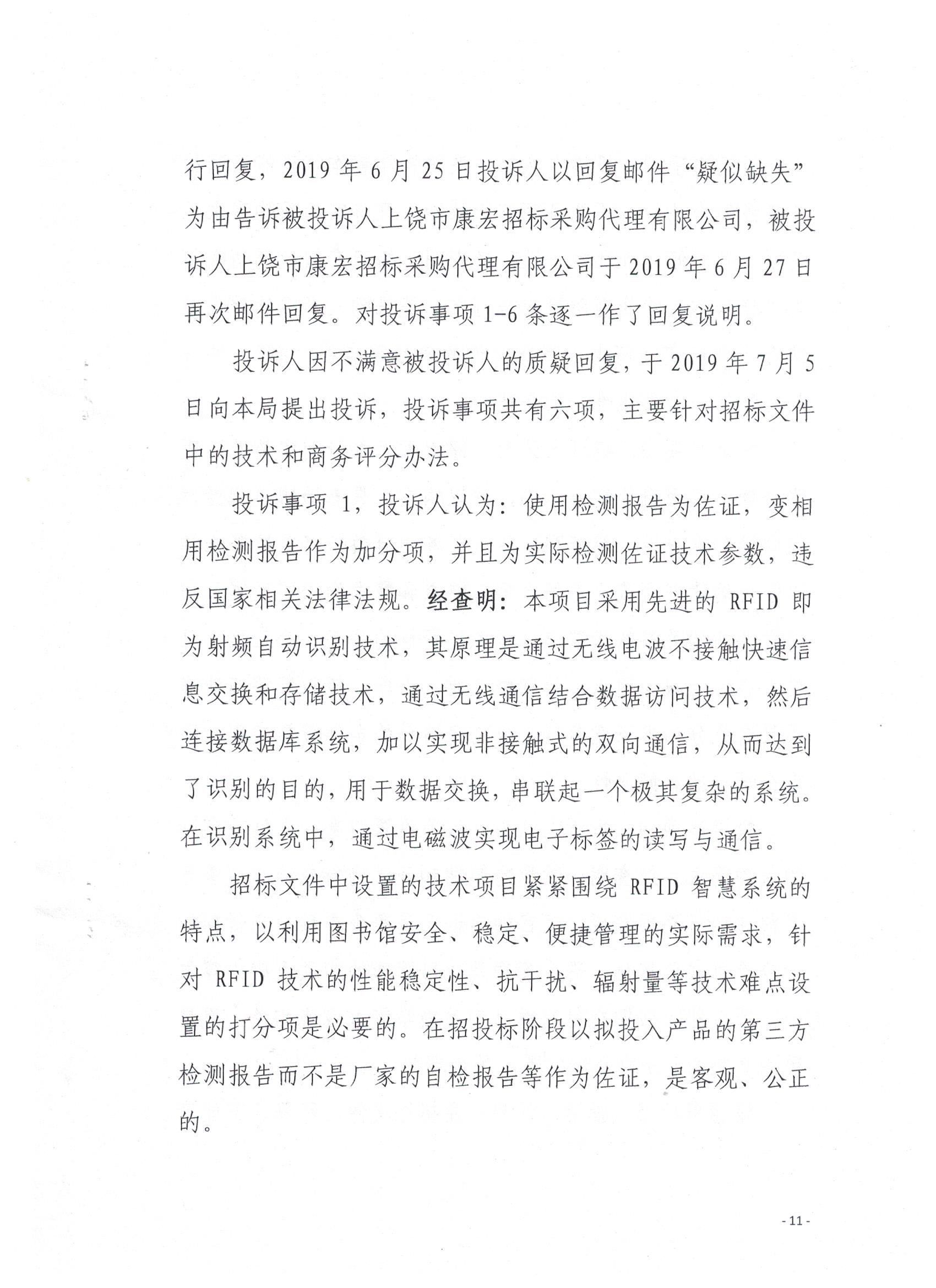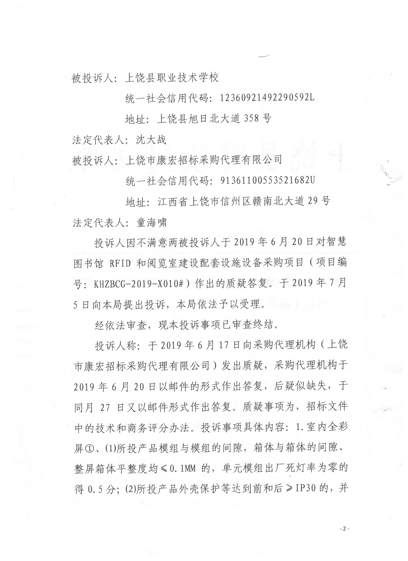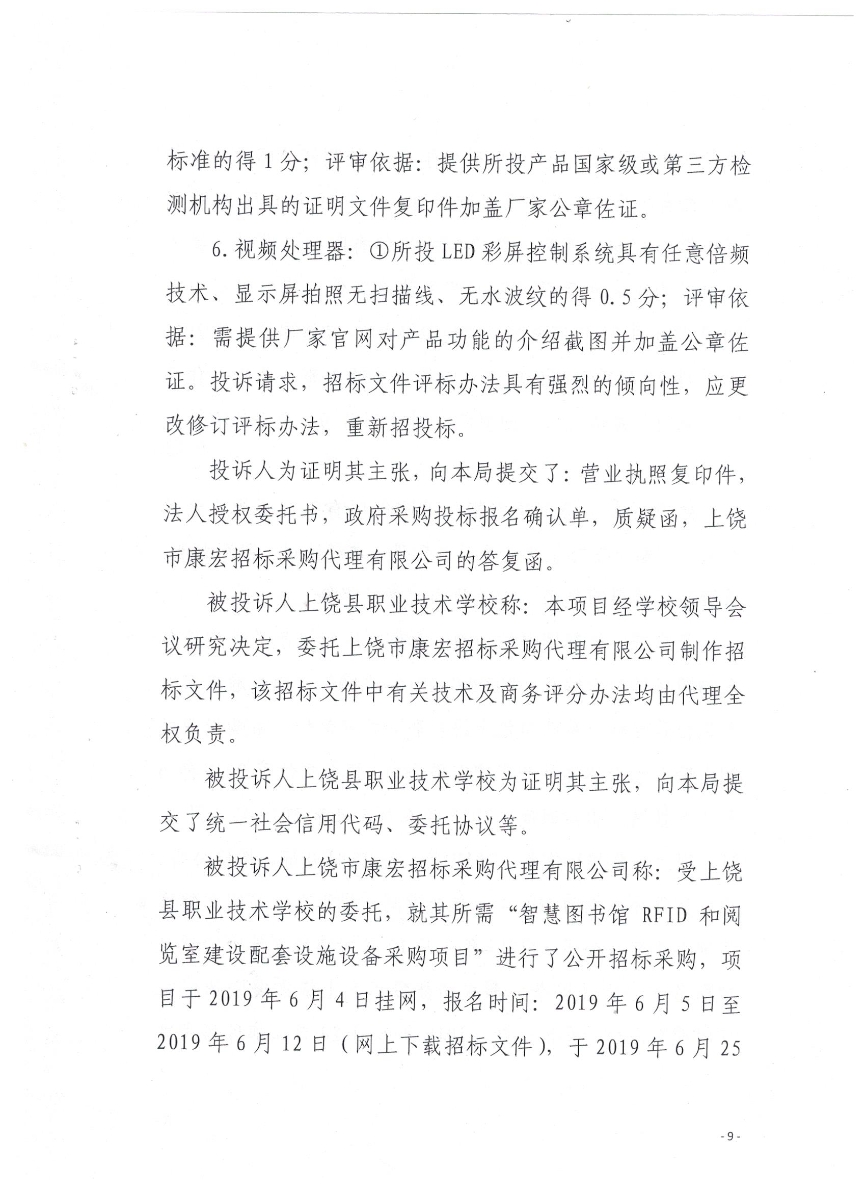 上饶县财政局投诉处理决定书 饶县财购办[2019]3号