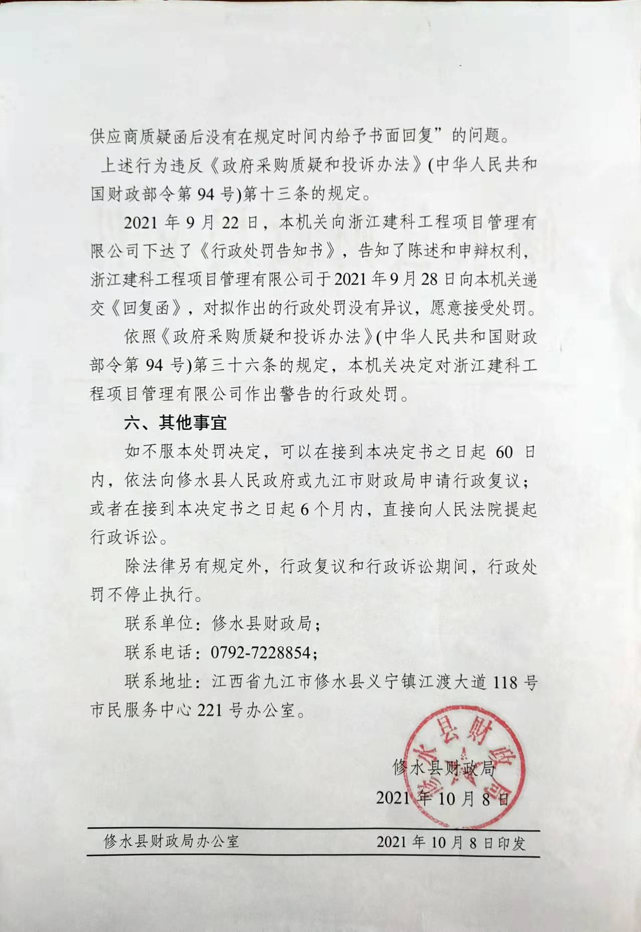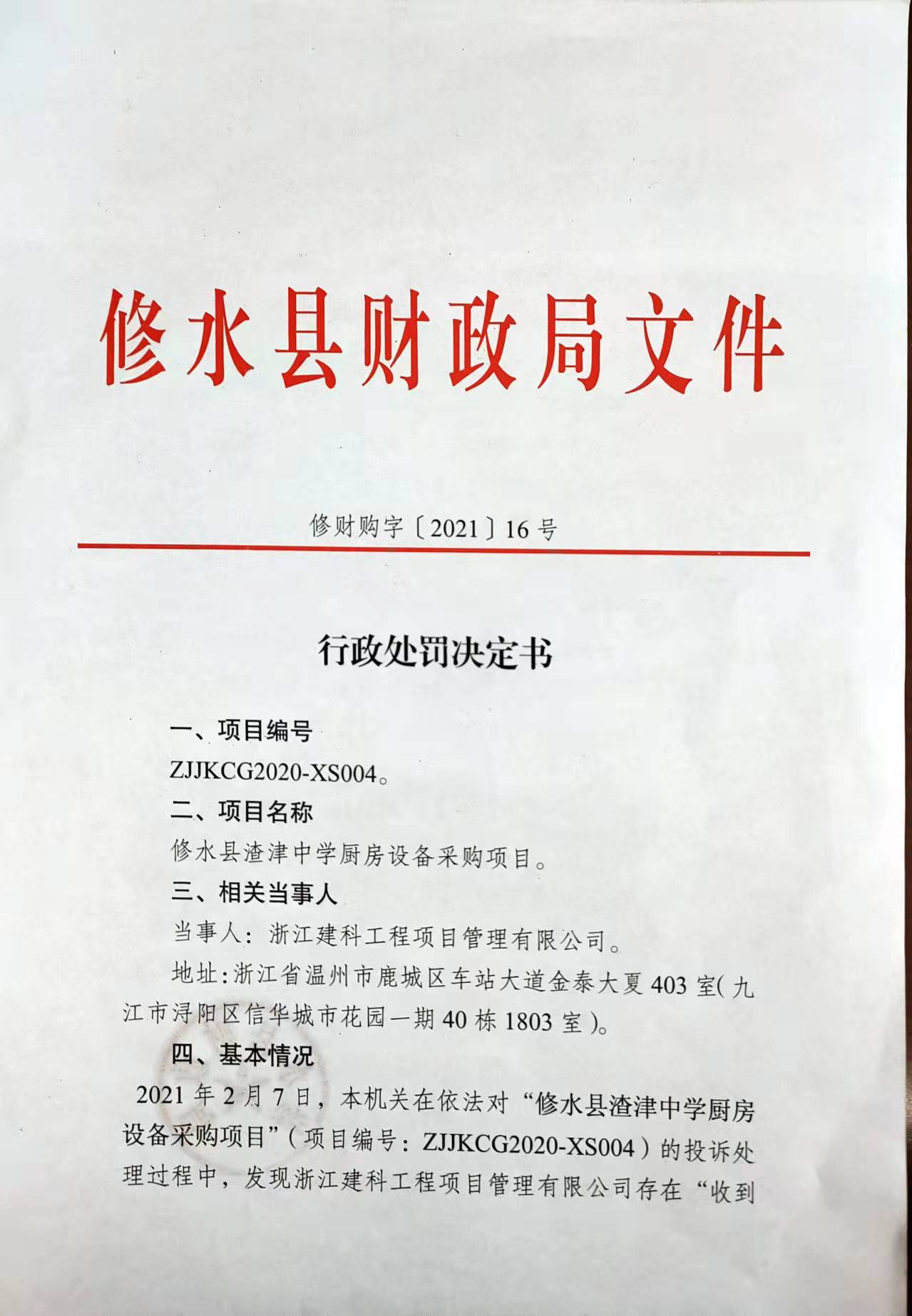 修水县财政局行政处罚决定书(修财购字【2021】16号)